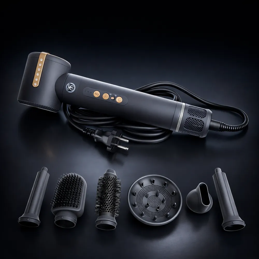 Med sju utbytbara stylingtillbehör får du maximal flexibilitet. Byt enkelt mellan locktillsatser, borstar och munstycken för att skapa olika frisyrer – oavsett om du har fint, tjockt, rakt, vågigt eller lockigt hår.